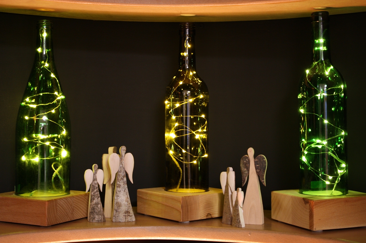Sehr stimmungsvoll wirkt die Flasche (Olive), da sie im Inneren mit einer Lichterkette versehen ist.